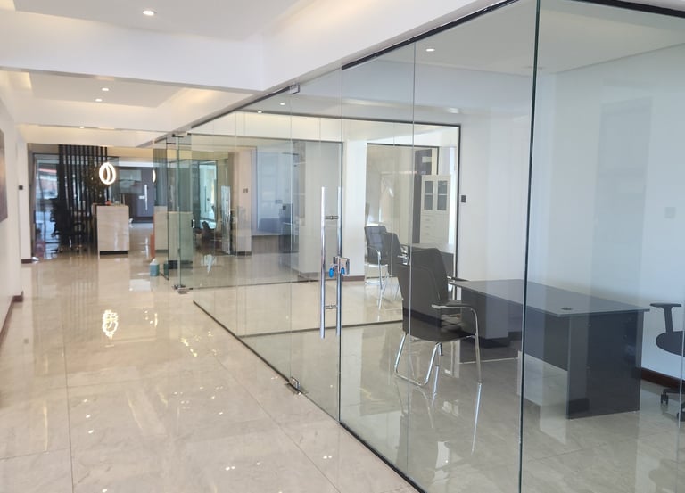 The frameless glass partitions transformed our office space—open, bright, and modern without losing privacy.